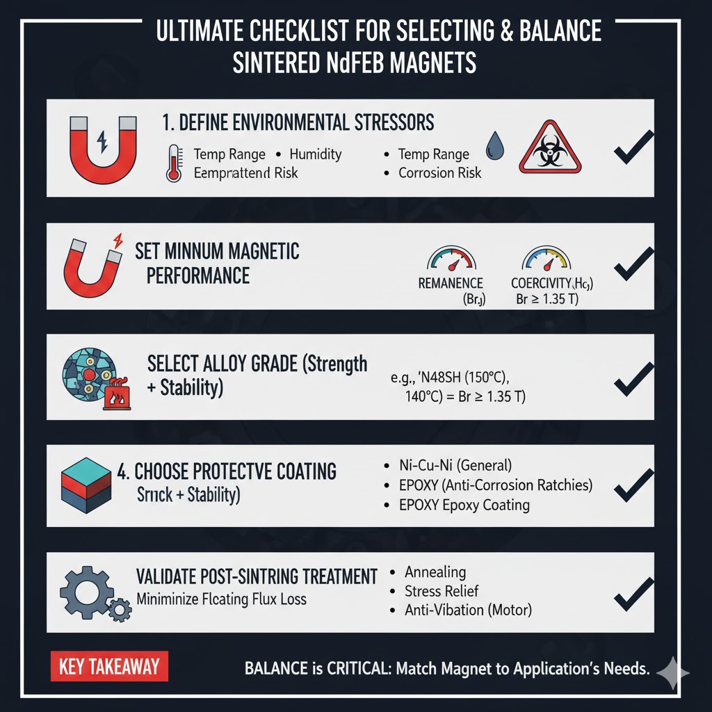 Để đảm bảo nam châm cân bằng hiệu suất và độ ổn định cho mục đích sử dụng, hãy làm theo danh sách kiểm tra năm bước sau:
